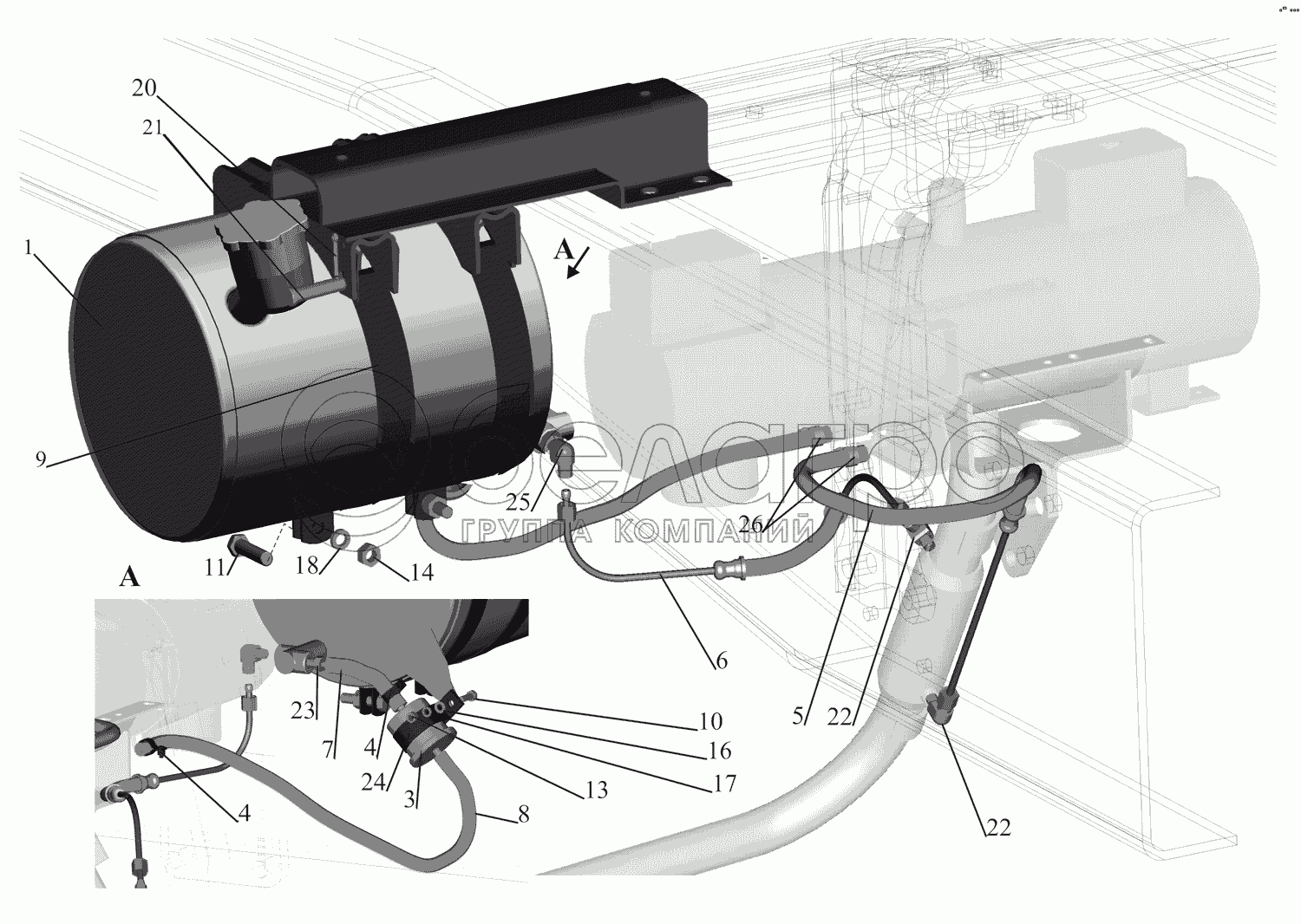 Каталог запасных частей к технике: МАЗ-551669. Установка топливопроводов подогревателя 64229-1015004-01