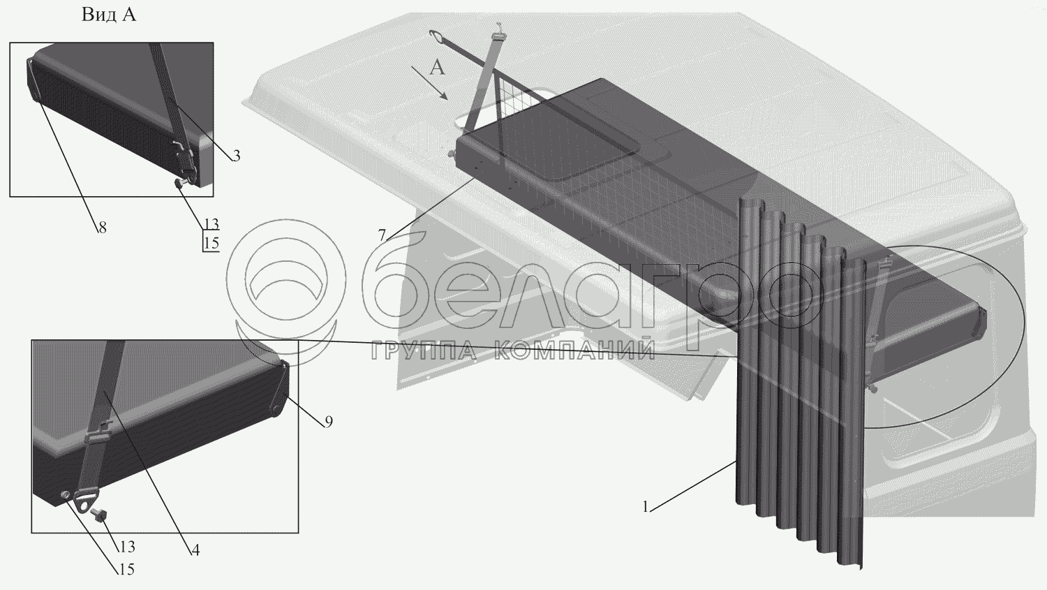 Каталог запасных частей к технике: МАЗ-551669. Установка верхнего спального места 64221-8200011