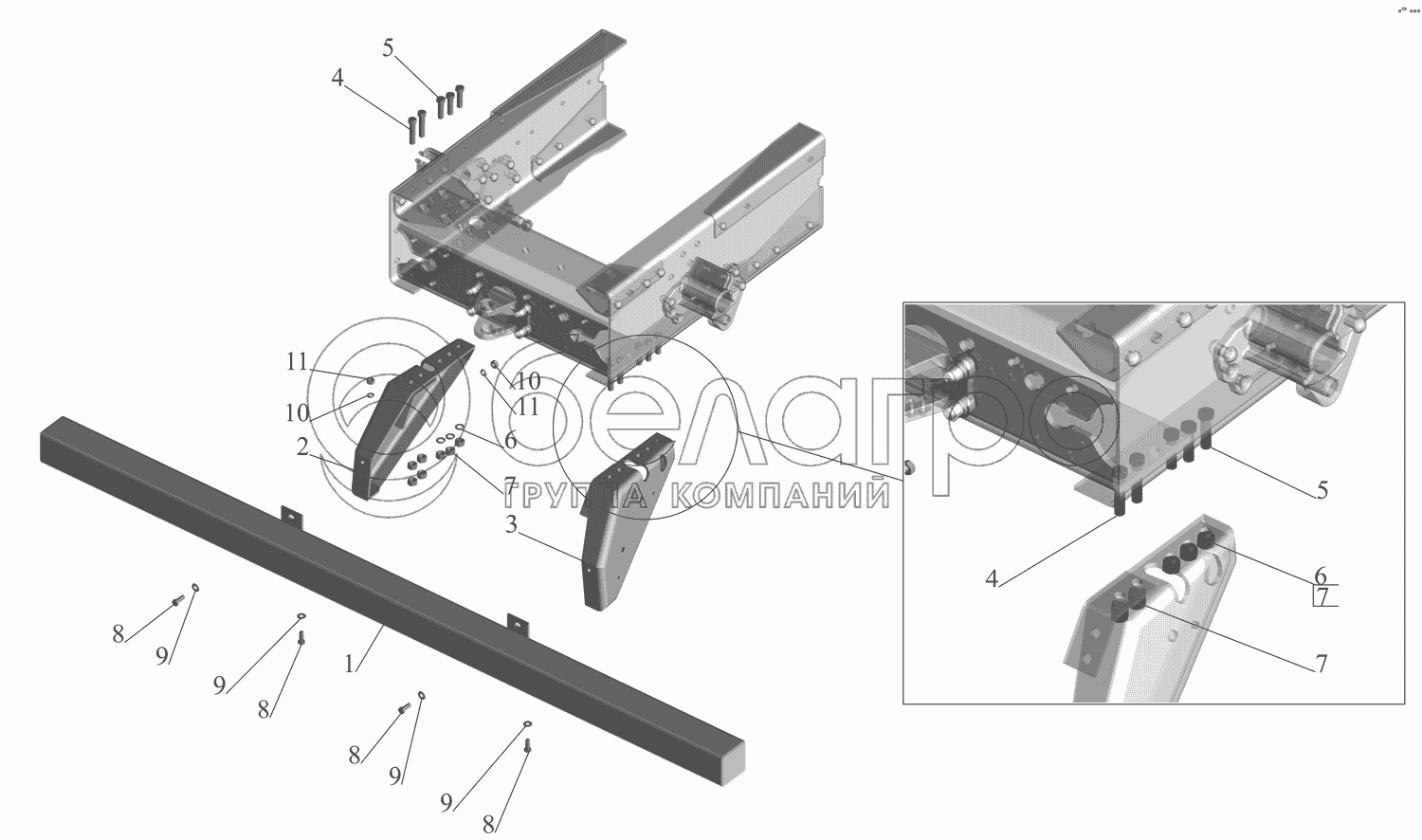 Каталог запасных частей к технике: МАЗ-551669. Установка заднего бампера