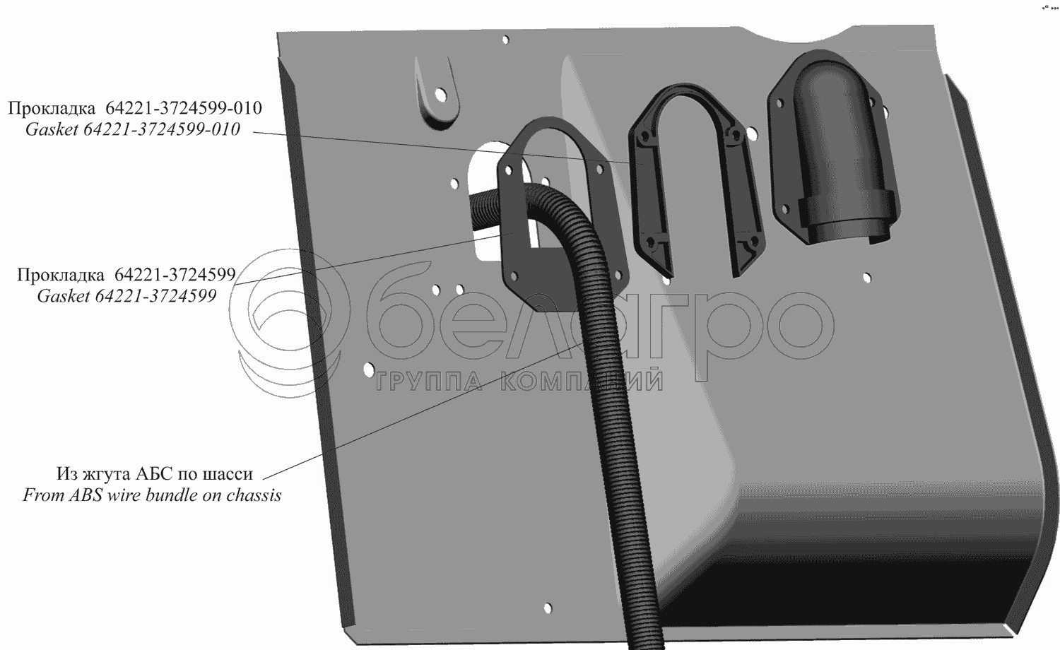 Каталог запасных частей к технике: МАЗ-551669. Ввод жгута АБС по шасси в кабину