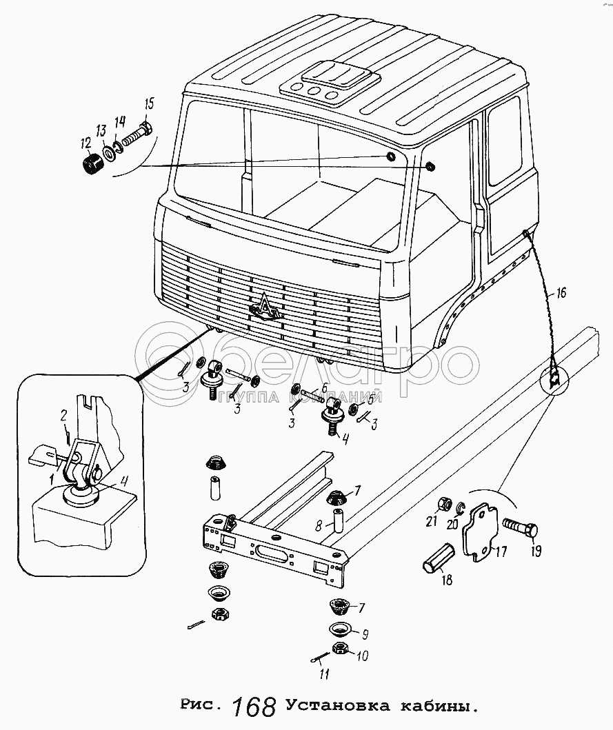 Каталог запасных частей к технике: МАЗ-5516. Установка кабины