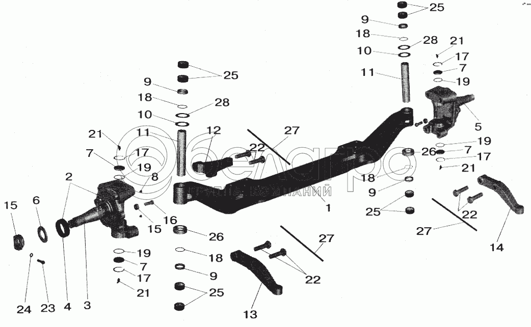 Каталог запасных частей к технике: МАЗ-5516 (2003). Балка передней оси
