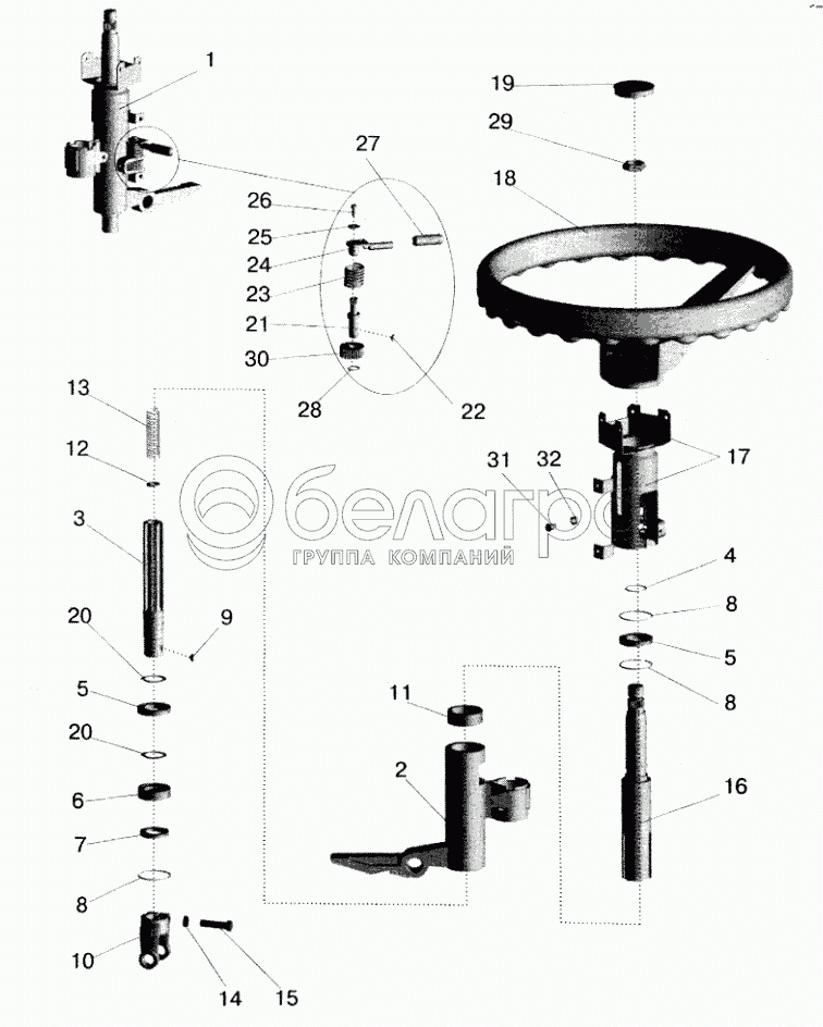 Каталог запасных частей к технике: МАЗ-5516 (2003). Колонка рулевая с колесом рулевого управления