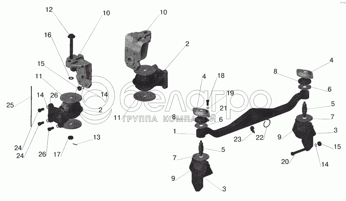 Каталог запасных частей к технике: МАЗ-5516 (2003). Крепление двигателя на автомобиле МАЗ-551605