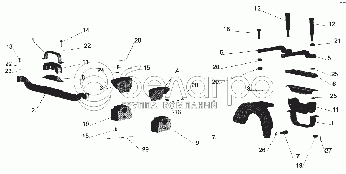 Каталог запасных частей к технике: МАЗ-5516 (2003). Крепление двигателя на автомобиле МАЗ-555102