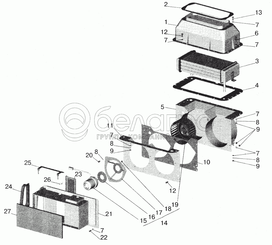 Каталог запасных частей к технике: МАЗ-5516 (2003). Отопитель