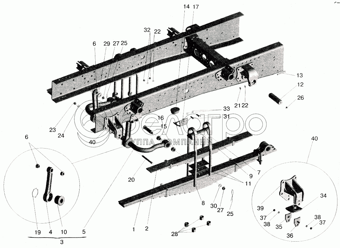 Каталог запасных частей к технике: МАЗ-5516 (2003). Подвеска задняя 54321-2900002-10