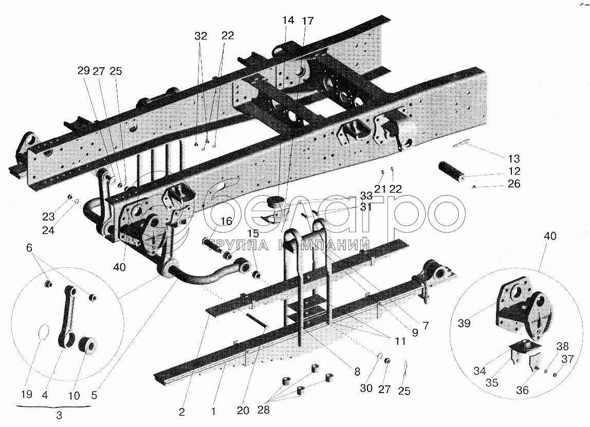 Каталог запасных частей к технике: МАЗ-5516 (2003). Подвеска задняя 5551-2900002-10