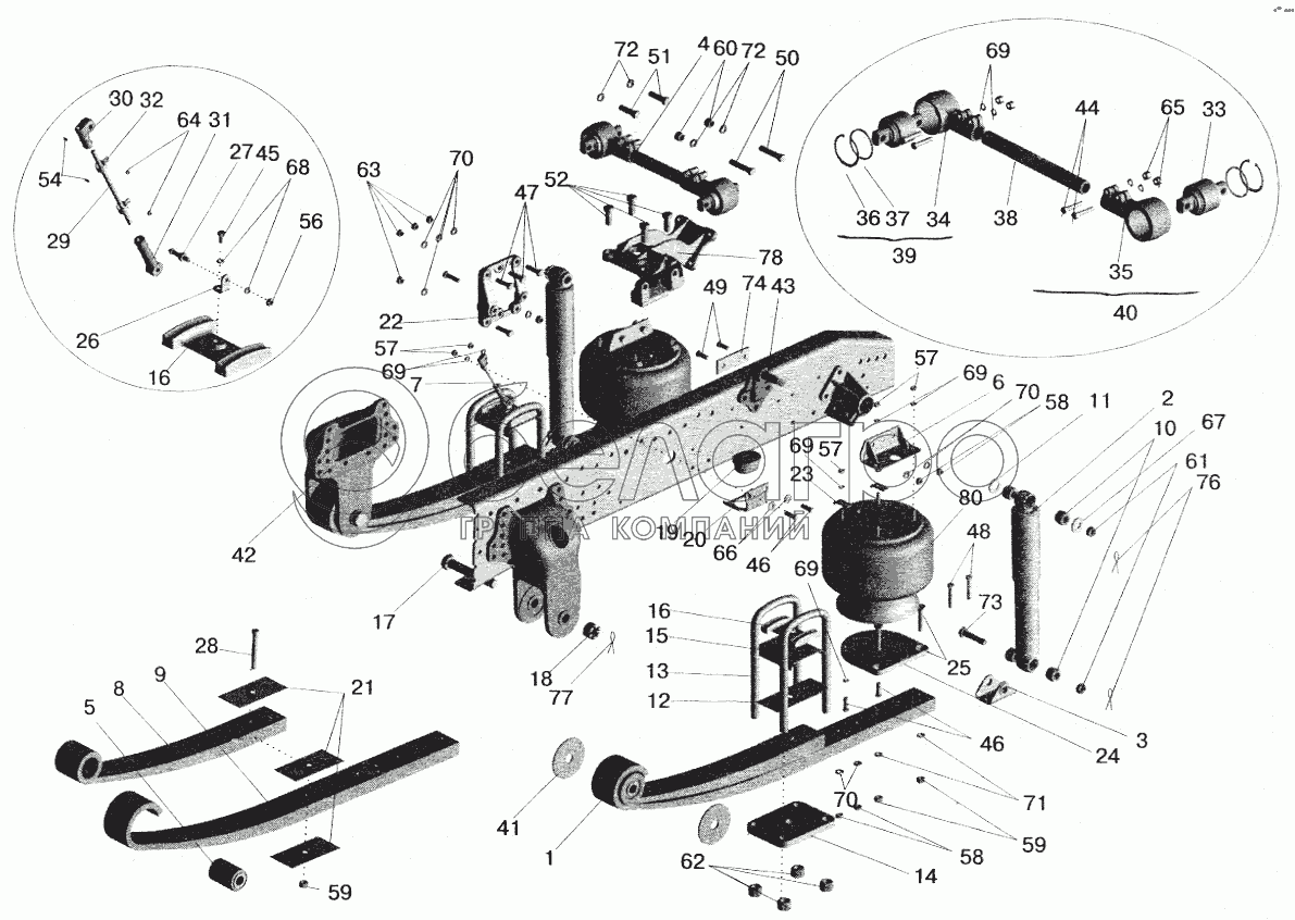 Каталог запасных частей к технике: МАЗ-5516 (2003). Подвеска задняя пневматическая 54327-2900002-20
