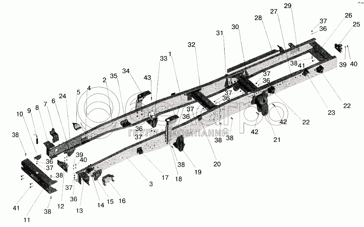 Каталог запасных частей к технике: МАЗ-5516 (2003). Рама 543205, 543208-пневмоподвеска