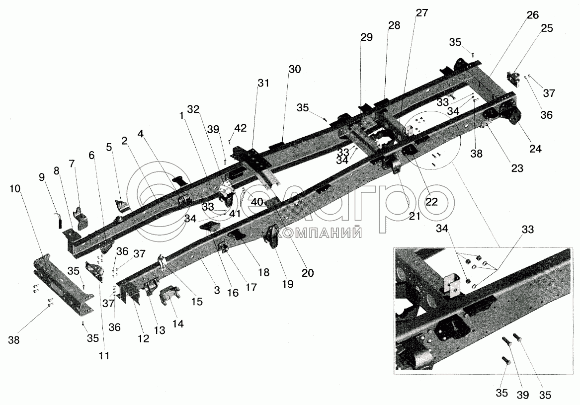 Каталог запасных частей к технике: МАЗ-5516 (2003). Рама 555102