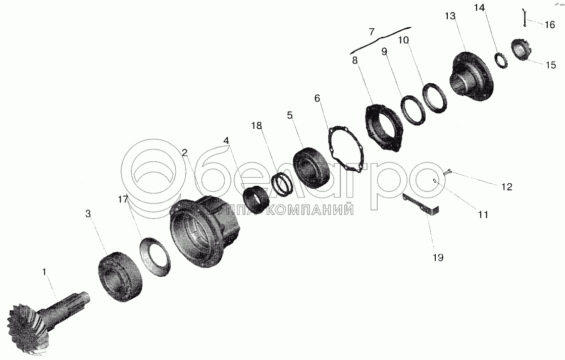 Каталог запасных частей к технике: МАЗ-5516 (2003). Редуктор заднего моста. Шестерня ведущая