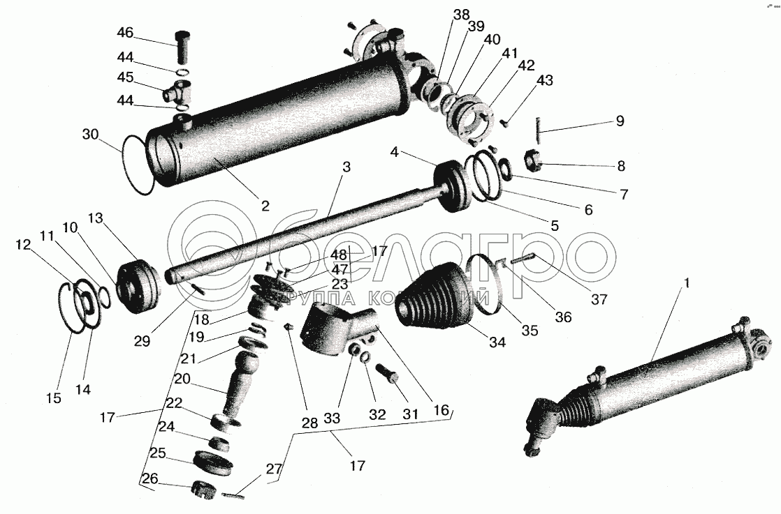 Каталог запасных частей к технике: МАЗ-5516 (2003). Силовой цилиндр гидроусилителя рулевого управления