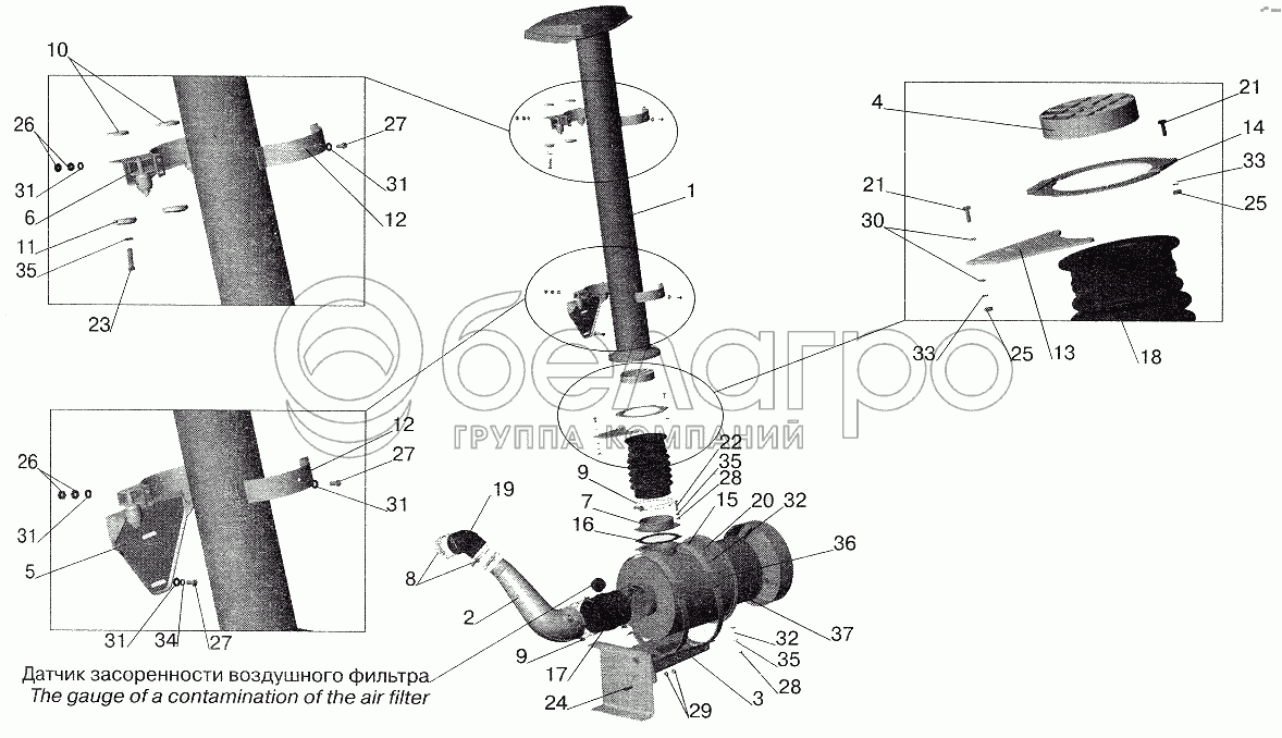 Каталог запасных частей к технике: МАЗ-5516 (2003). Система питания воздухом МАЗ-543202, 543203