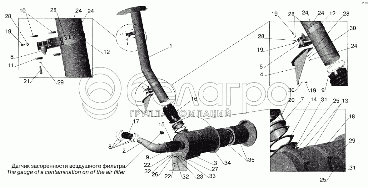 Каталог запасных частей к технике: МАЗ-5516 (2003). Система питания воздухом МАЗ-551605