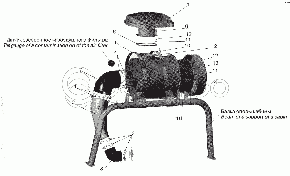 Каталог запасных частей к технике: МАЗ-5516 (2003). Система питания воздухом МАЗ-555102