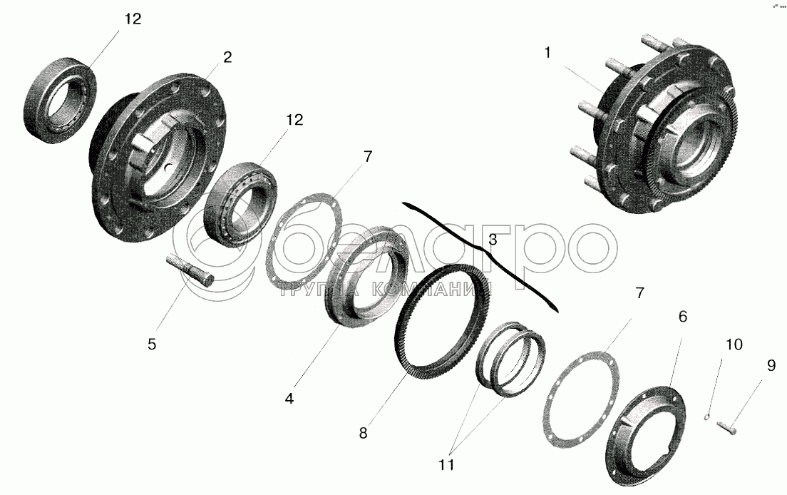 Каталог запасных частей к технике: МАЗ-5516 (2003). Ступица моста