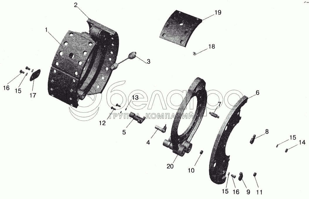 Каталог запасных частей к технике: МАЗ-5516 (2003). Тормоз колеса