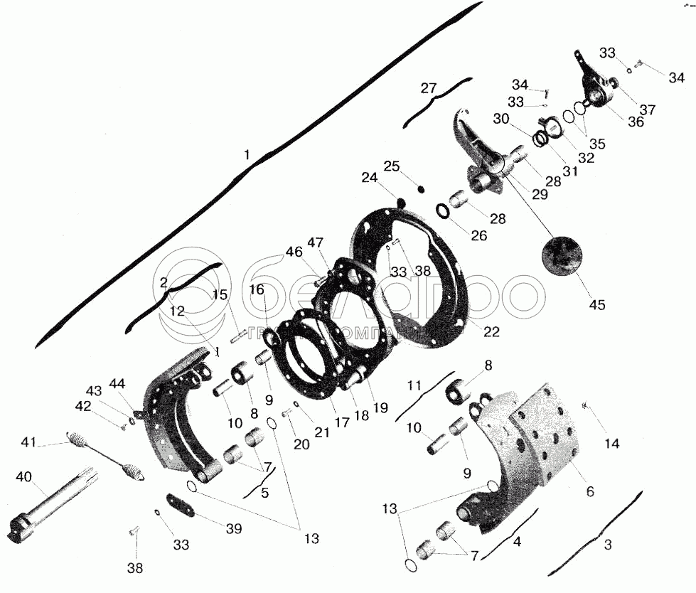 Каталог запасных частей к технике: МАЗ-5516 (2003). Тормозной механизм передних колес
