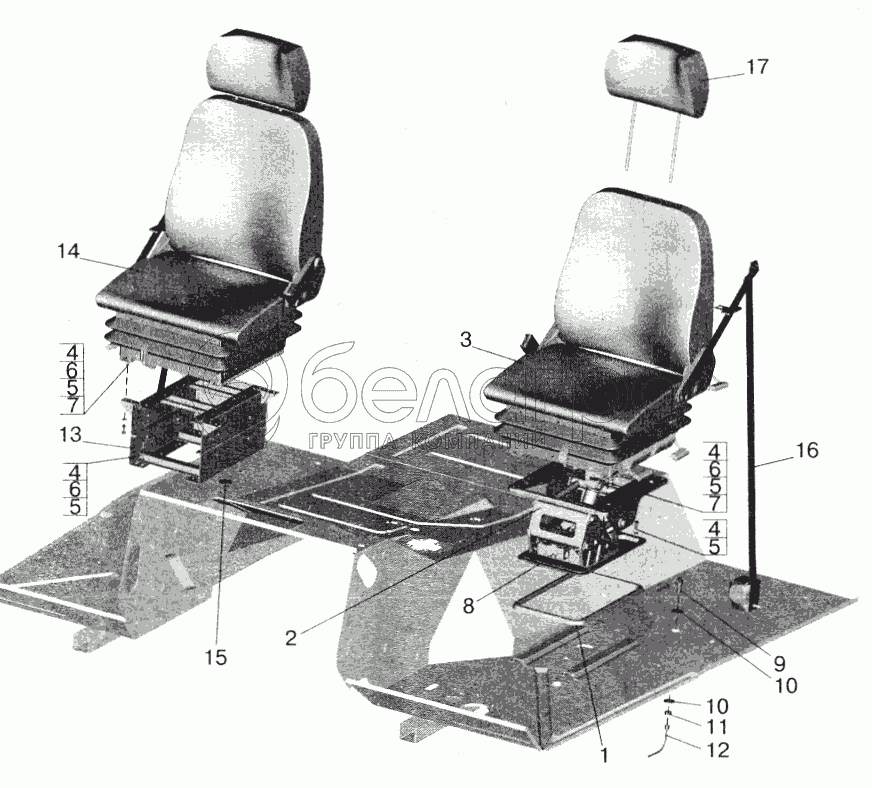 Каталог запасных частей к технике: МАЗ-5516 (2003). Установка и пневмопитание сидений 5433-6800006