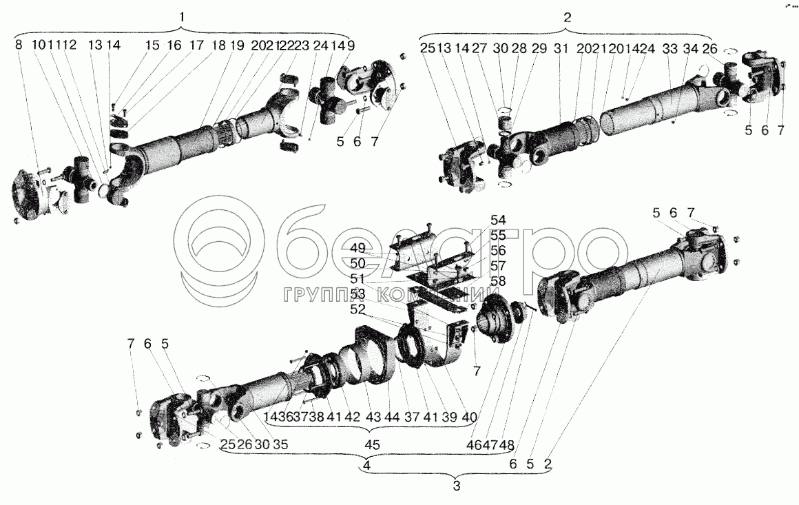 Каталог запасных частей к технике: МАЗ-5516 (2003). Установка карданных валов