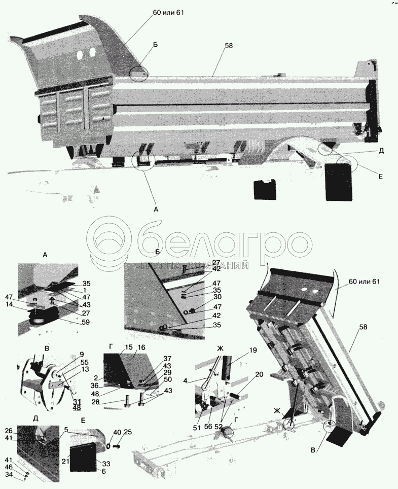 Каталог запасных частей к технике: МАЗ-5516 (2003). Установка платформы 555102-8500002