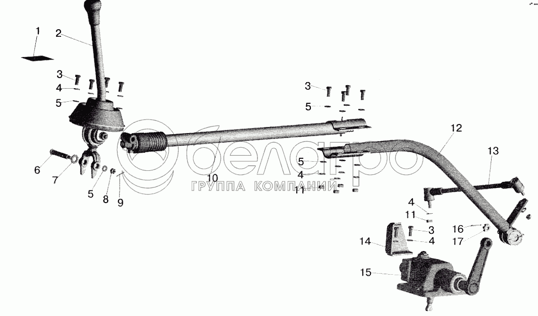 Каталог запасных частей к технике: МАЗ-5516 (2003). Установка привода управления коробкой передач