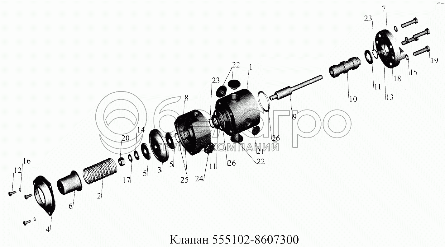 Каталог запасных частей к технике: МАЗ-5516А5. Клапан 555102-8607300