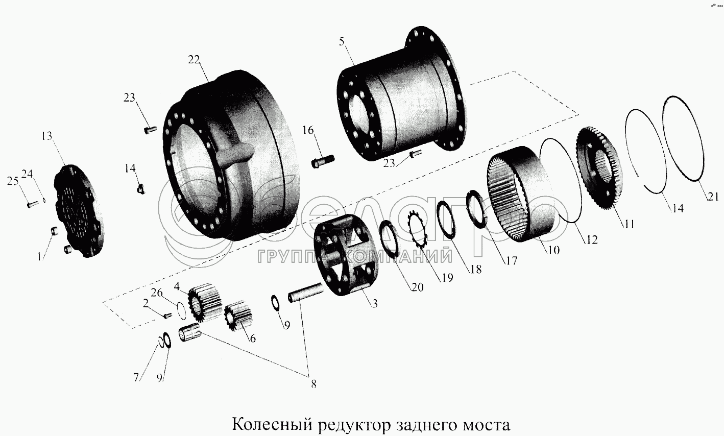 Каталог запасных частей к технике: МАЗ-5516А5. Колесный редуктор заднего моста