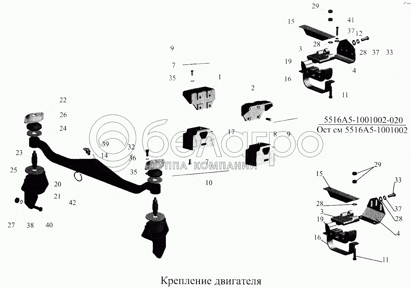 Каталог запасных частей к технике: МАЗ-5516А5. Крепление двигателя