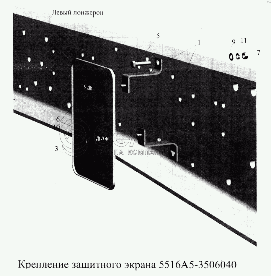 Каталог запасных частей к технике: МАЗ-5516А5. Крепление защитного экрана 5516А5-3506040