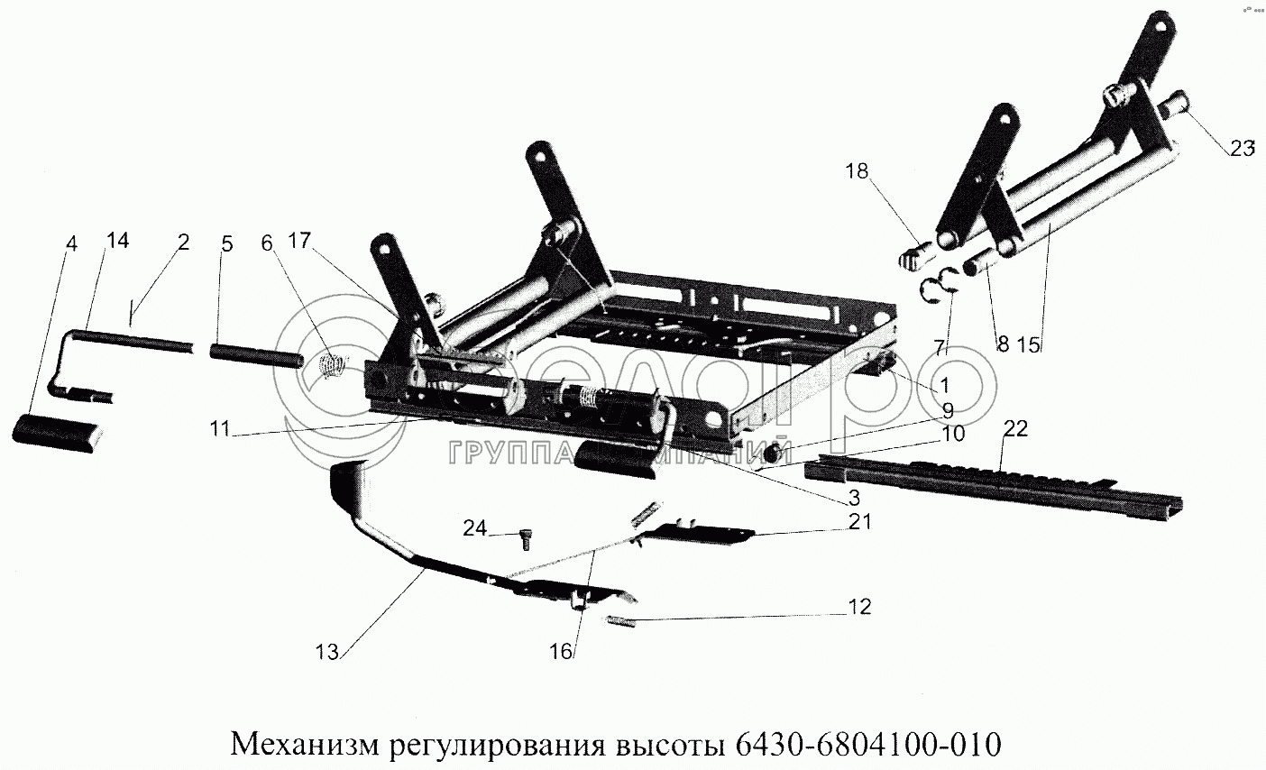Каталог запасных частей к технике: МАЗ-5516А5. Механизм регулирования высоты 6430-6804100-010