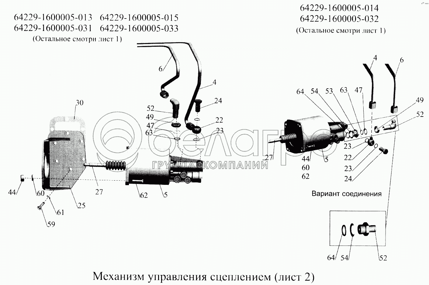 Каталог запасных частей к технике: МАЗ-5516А5. Механизм управления сцеплением