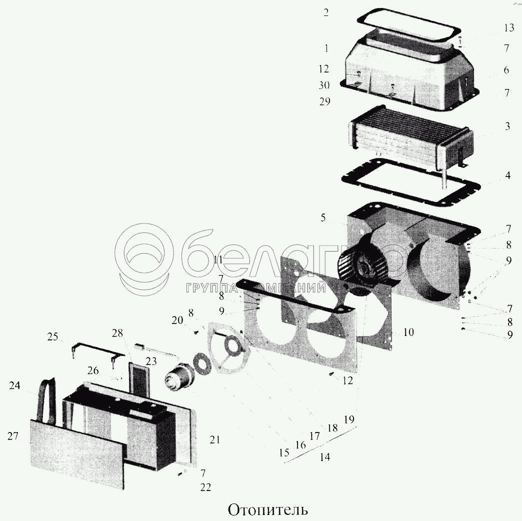 Каталог запасных частей к технике: МАЗ-5516А5. Отопитель 64721-8101010