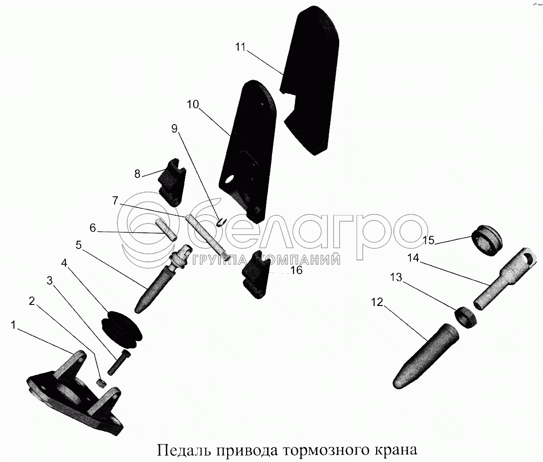 Каталог запасных частей к технике: МАЗ-5516А5. Педаль привода тормозного крана