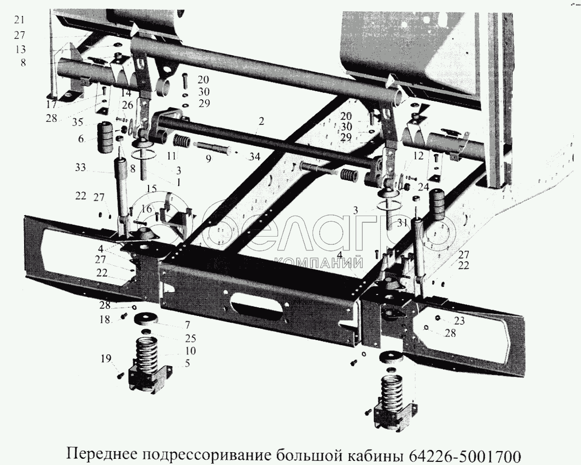 Каталог запасных частей к технике: МАЗ-5516А5. Переднее подрессоривание большой кабины 64276-5001700