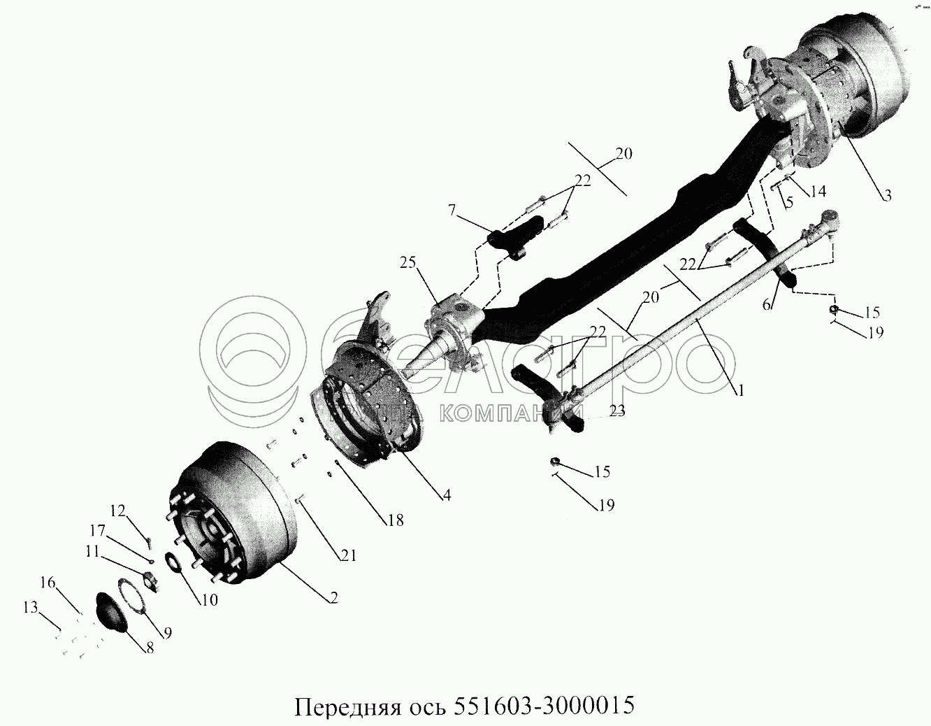 Каталог запасных частей к технике: МАЗ-5516А5. Передняя ось 551603-3000015