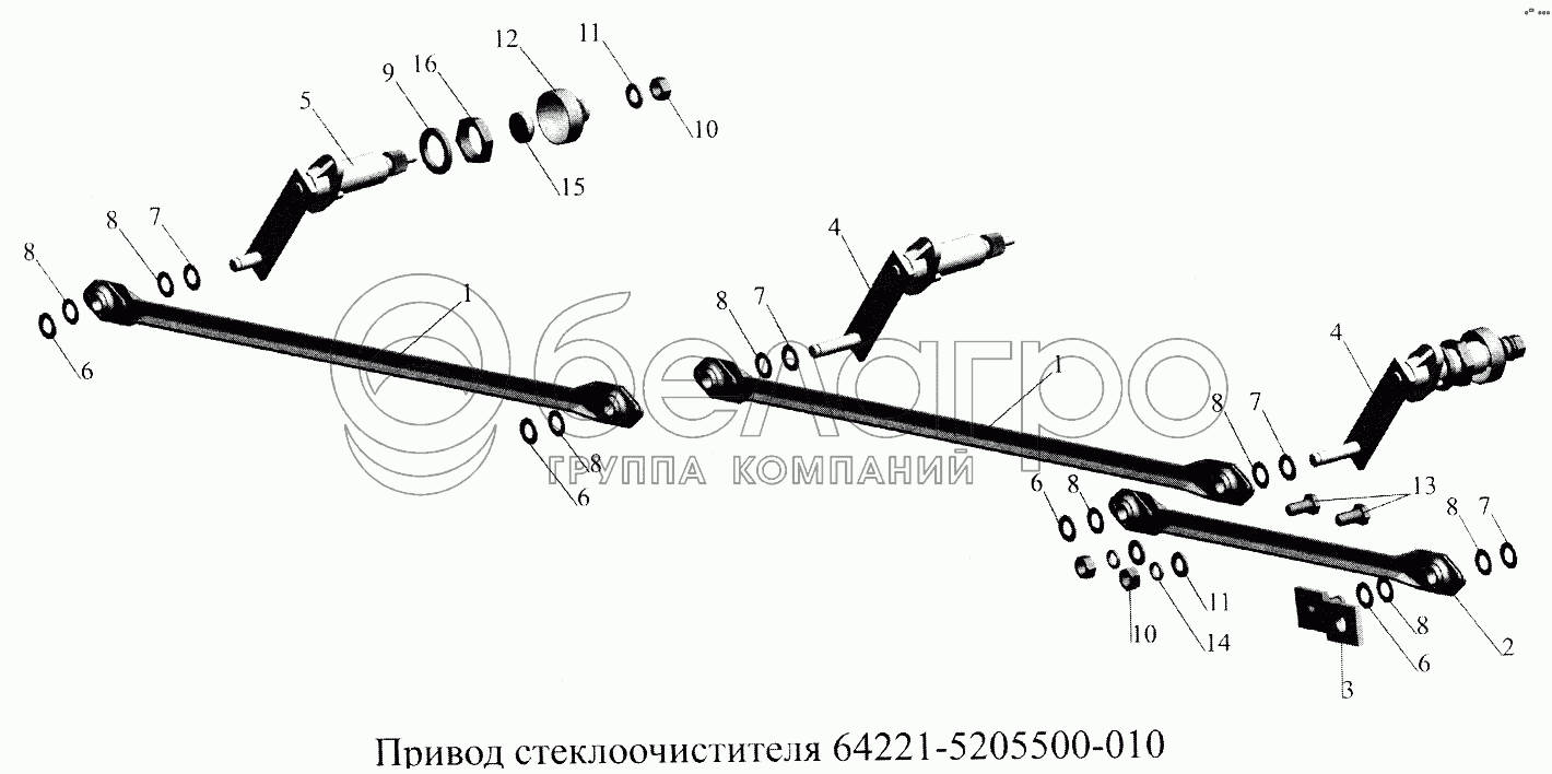 Каталог запасных частей к технике: МАЗ-5516А5. Привод стеклоочистителя 64221-5205500-010
