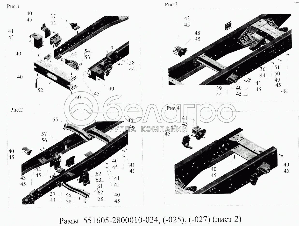 Каталог запасных частей к технике: МАЗ-5516А5. Рамы 551605-2800010-024, (-025), (-027)