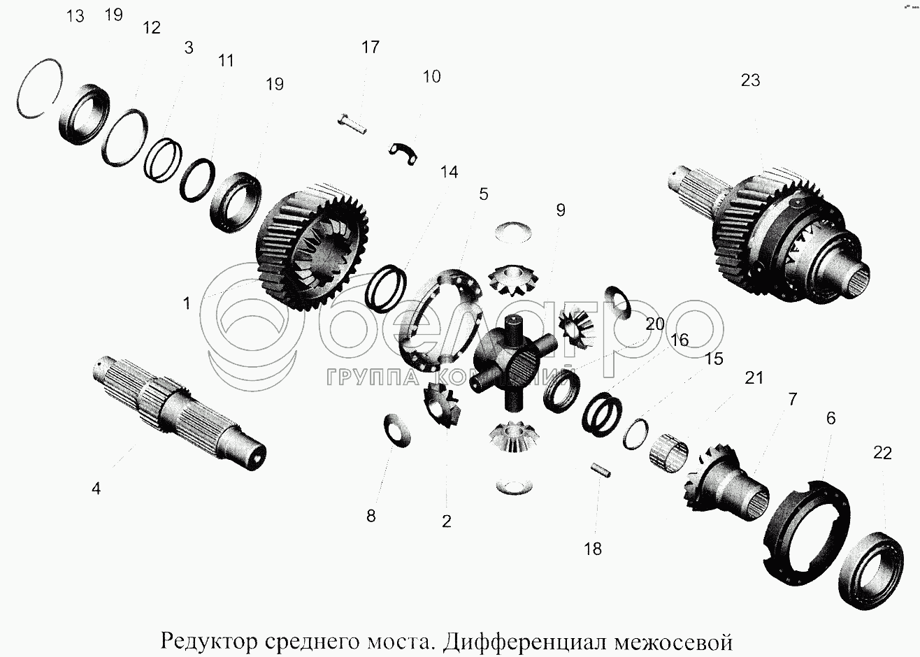 Каталог запасных частей к технике: МАЗ-5516А5. Редуктор среднего моста. Дифференциал межосевой