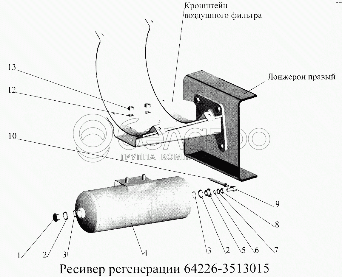 Каталог запасных частей к технике: МАЗ-5516А5. Ресивер регенерации 64276-3513015