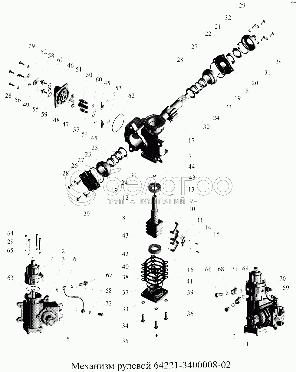 Каталог запасных частей к технике: МАЗ-5516А5. Рулевой механизм 64221-3400008-02