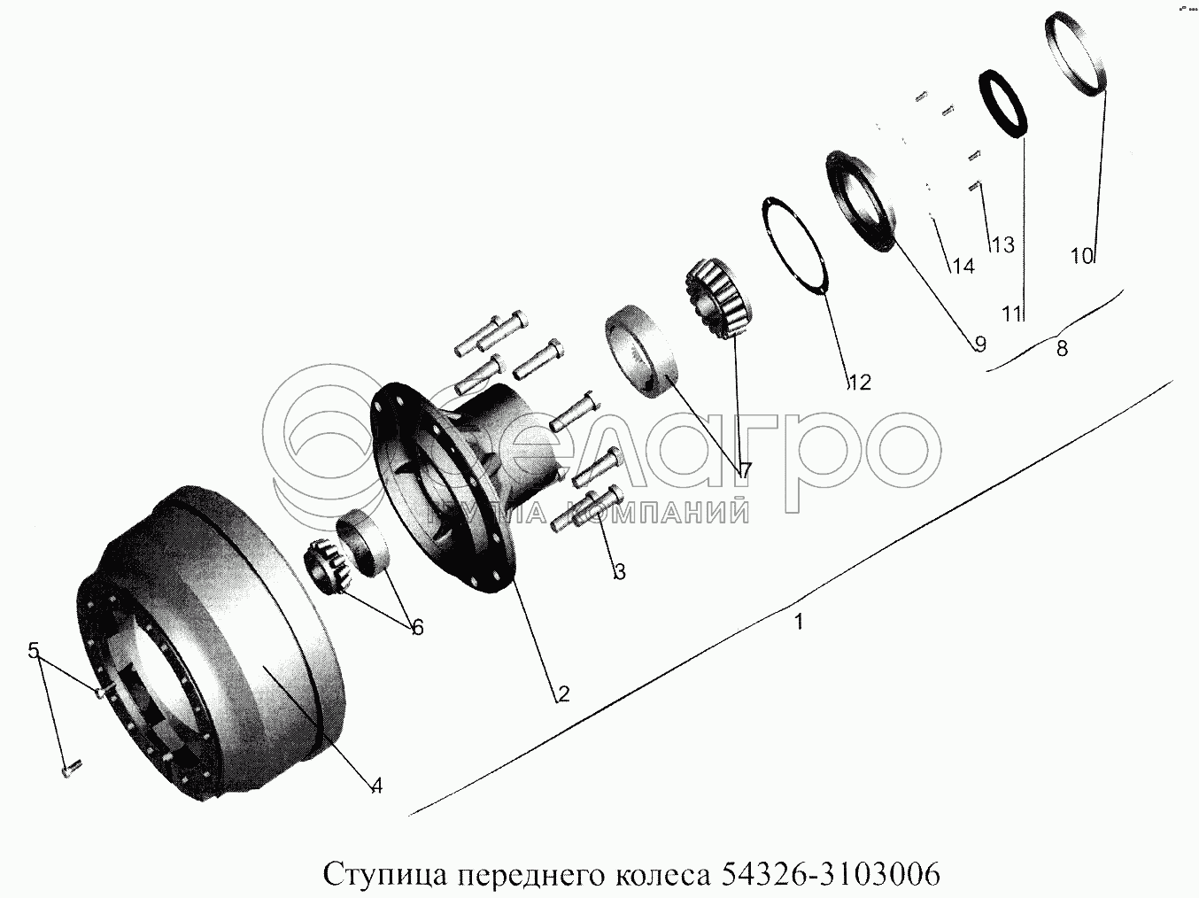 Каталог запасных частей к технике: МАЗ-5516А5. Ступица переднего колеса 54326-3103006