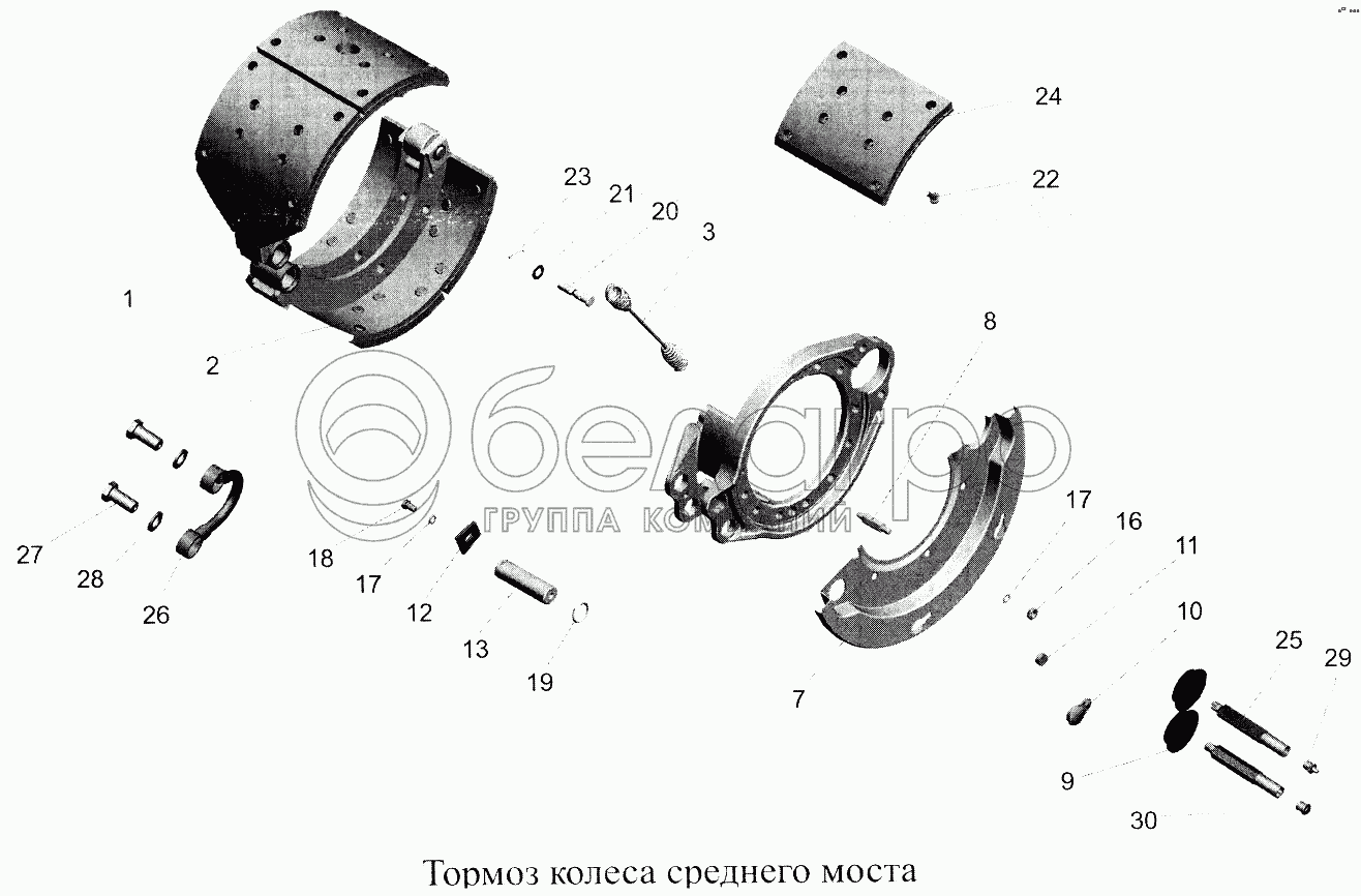 Каталог запасных частей к технике: МАЗ-5516А5. Тормоз колеса среднего моста