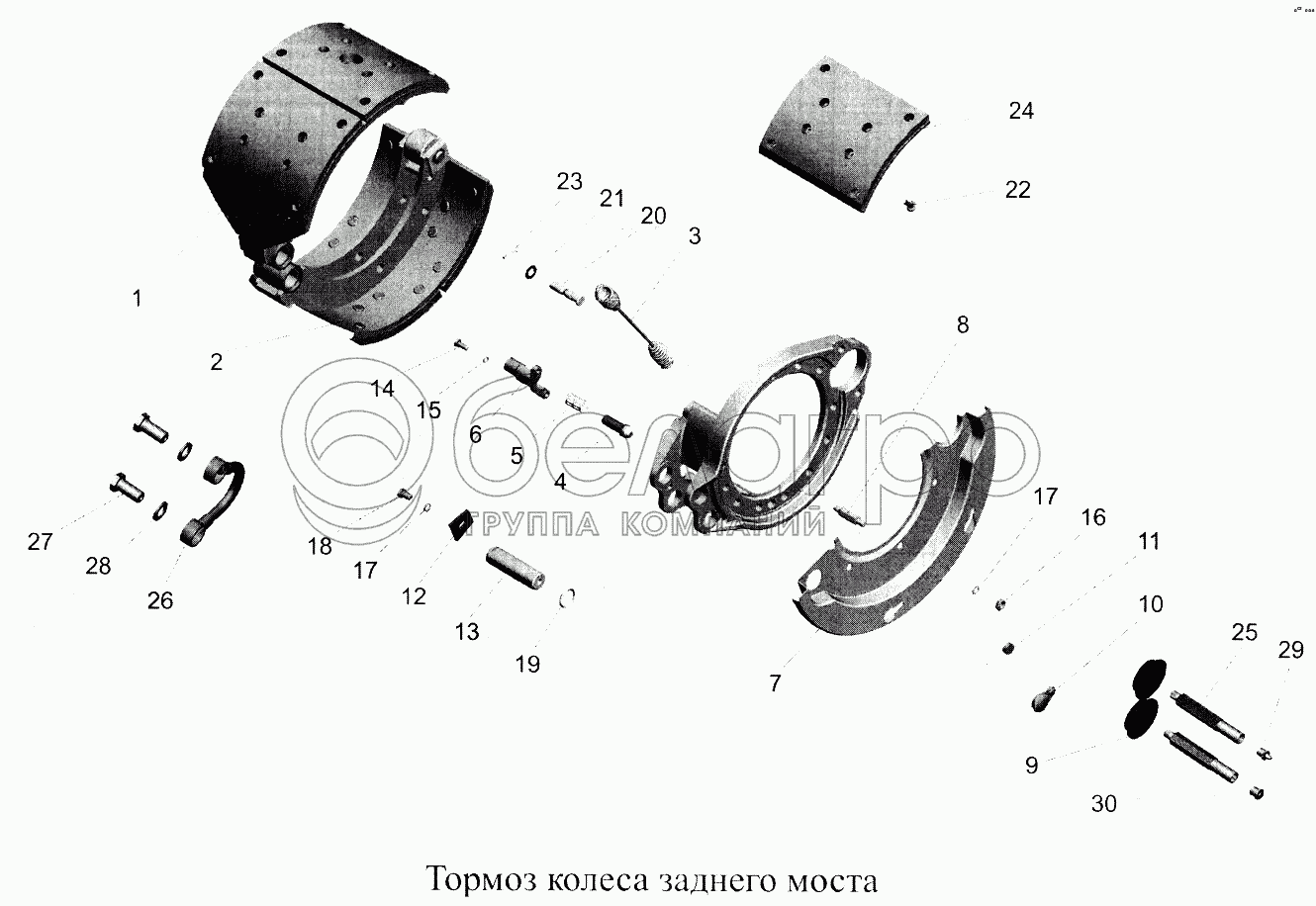 Каталог запасных частей к технике: МАЗ-5516А5. Тормоз колеса заднего моста