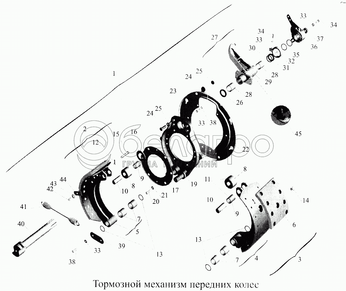 Каталог запасных частей к технике: МАЗ-5516А5. Тормозной механизм передних колес