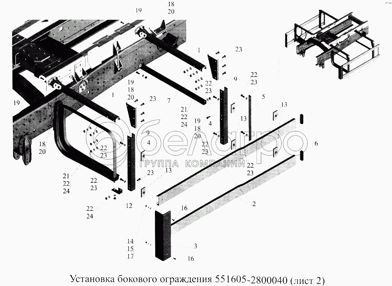Каталог запасных частей к технике: МАЗ-5516А5. Установка бокового ограждения 551605-2800040