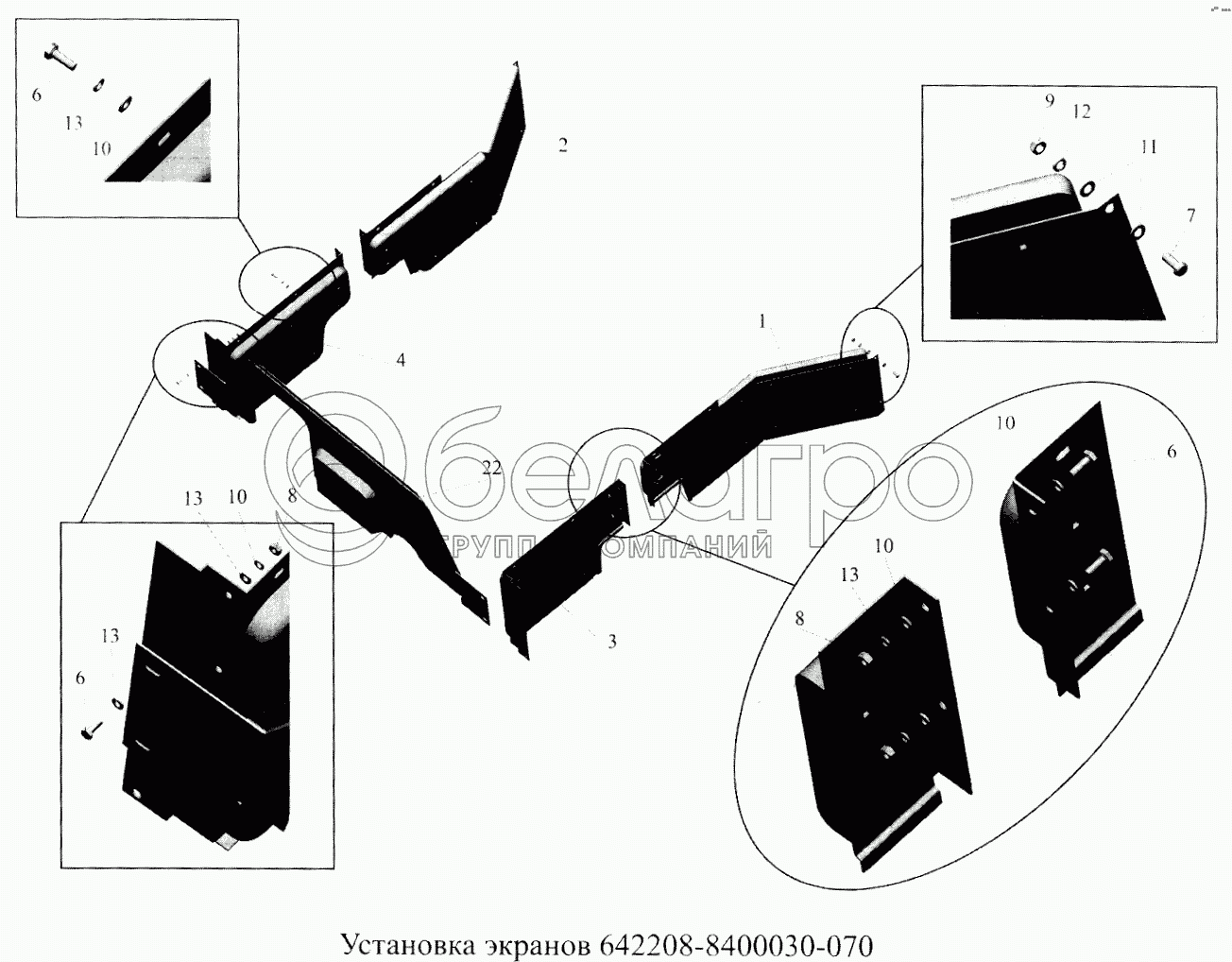 Каталог запасных частей к технике: МАЗ-5516А5. Установка экранов 642708-8400030-070