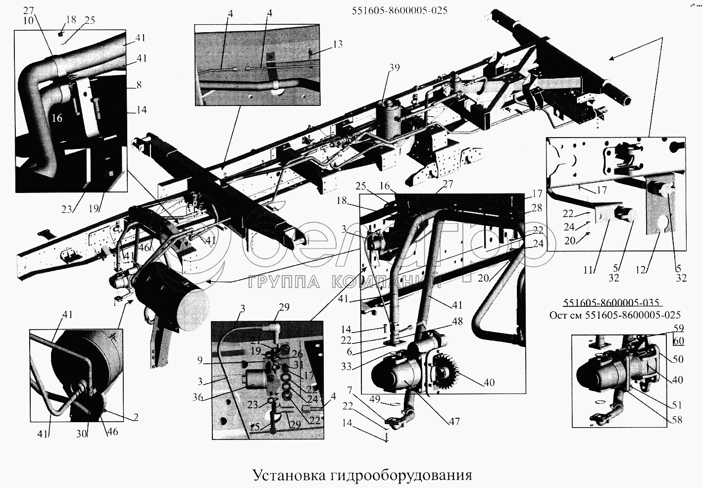 Каталог запасных частей к технике: МАЗ-5516А5. Установка гидрооборудования