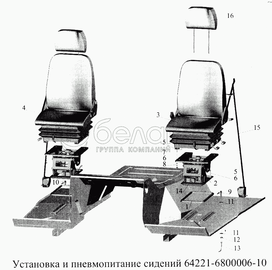 Каталог запасных частей к технике: МАЗ-5516А5. Установка и пневмопитание сидений 64221-6800006-10